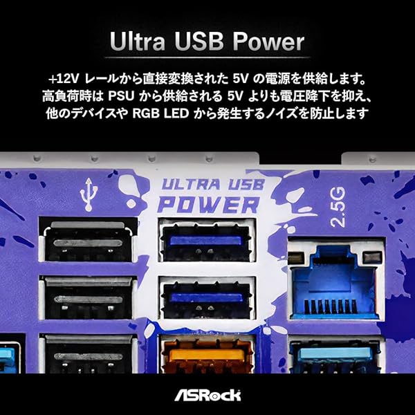 さらに一般的なゲーミング用マザーボードよりもUSBポートが多く、その中には高負荷時にもブレなく電力供給できる「ULTRA USB POWER」ポートが備わっています。