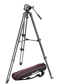 マンフロットの本格的ビデオ撮影向けのツインチューブ式3段アルミ三脚です。マンフロットの三脚は雲台の性能が非常に高く、撮影者の手振動をカメラに伝えにくくするフルードドラッグ機構を搭載しています。