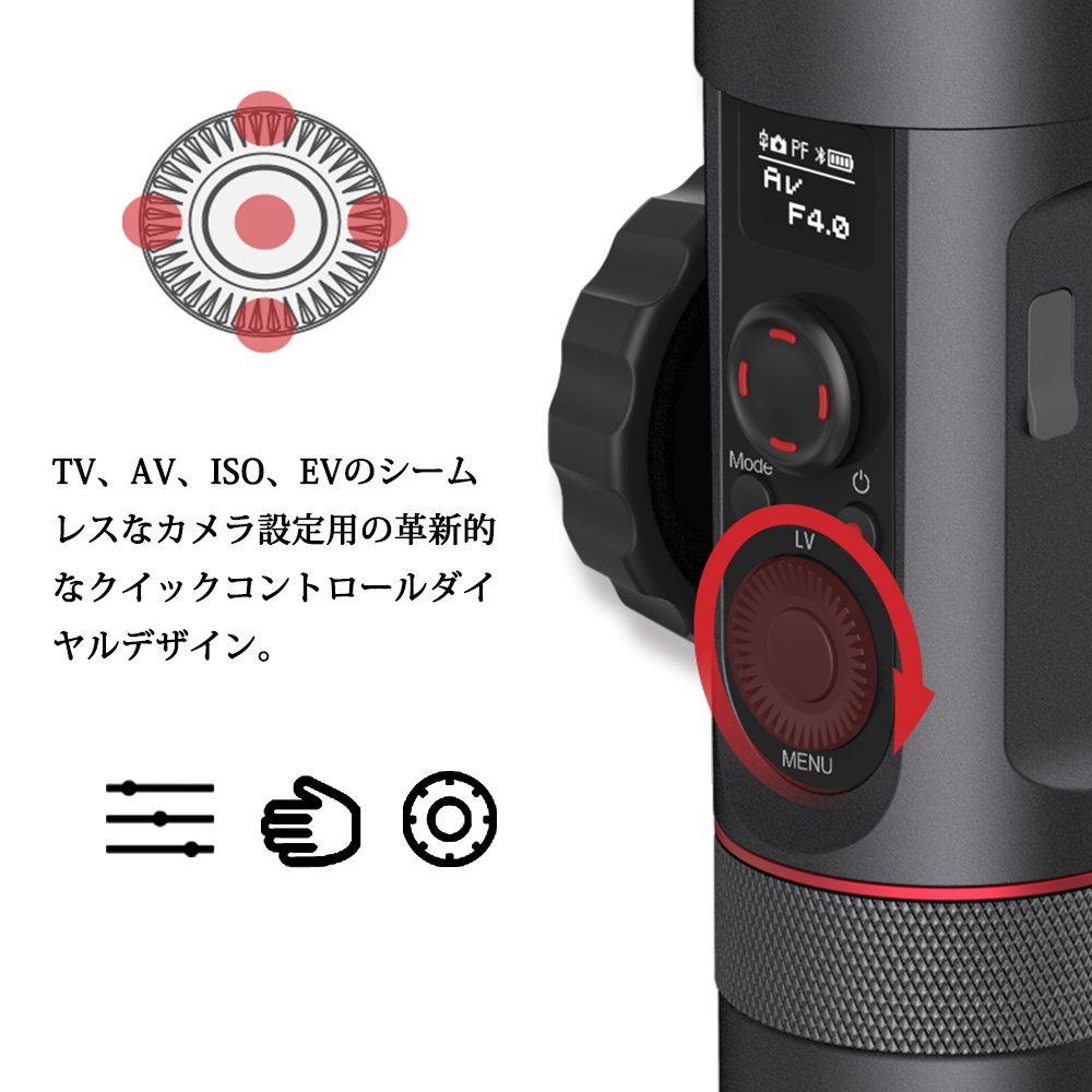 対応機種はCanon EOSシリーズ、パナソニックLUMIXシリーズ、SONY αミラーレスシリーズ、NikonDシリーズで、それ以外のカメラではスタビライザー機能は使えますが、ダイヤル操作や露出設定ができません。