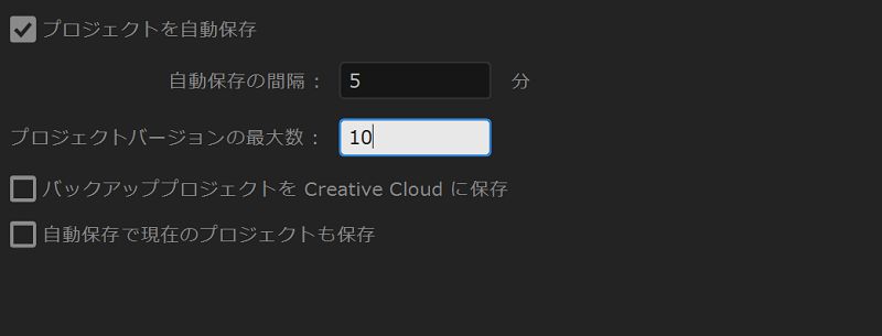これはオートセーブするプロジェクトの数のことで、Premiere Proは新しいプロジェクトを保存するたびに、古いプロジェクトを消してくれます。